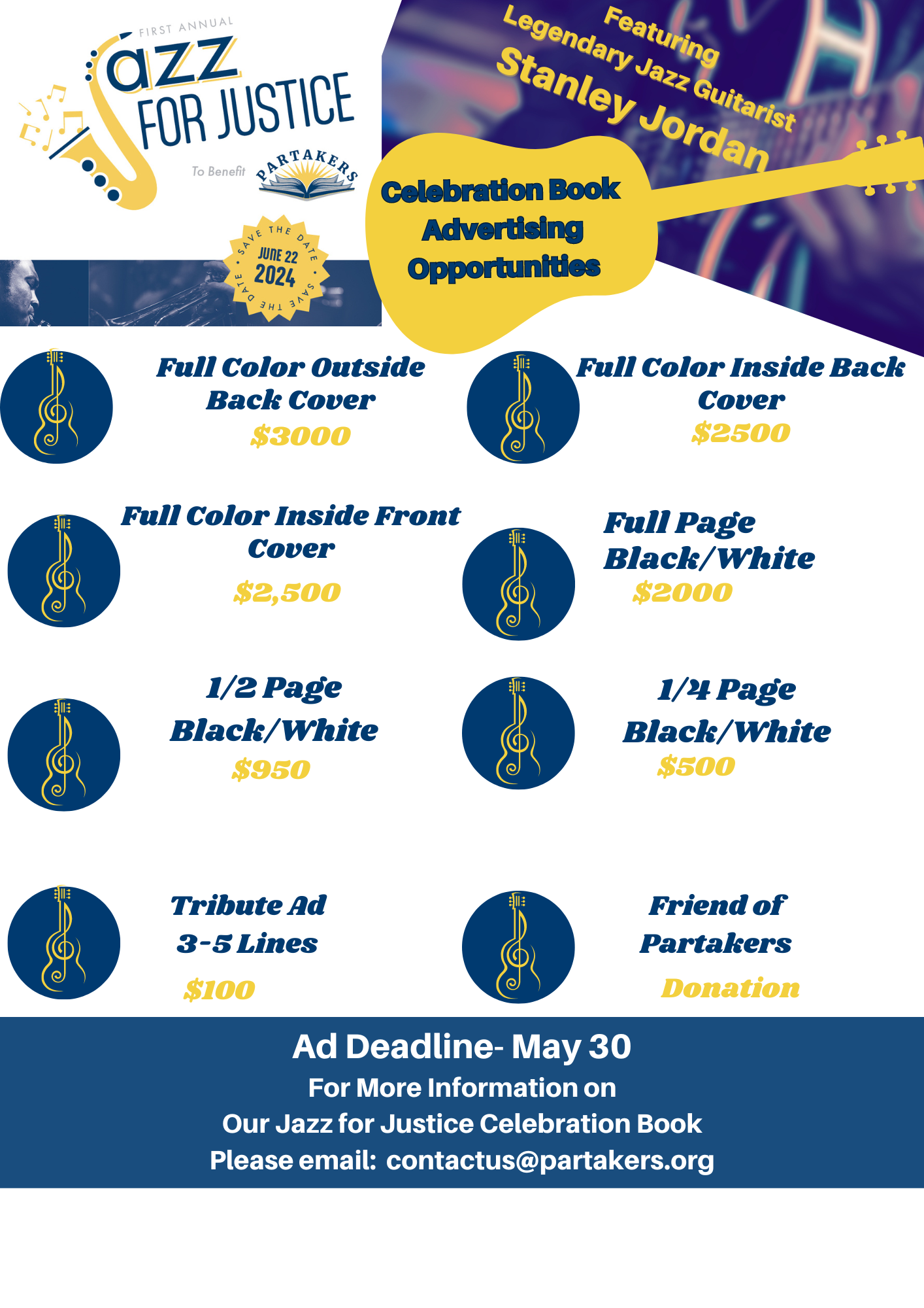 Thank you for your interest in advertising in out First Annual Jazz for Justice Celebration Book